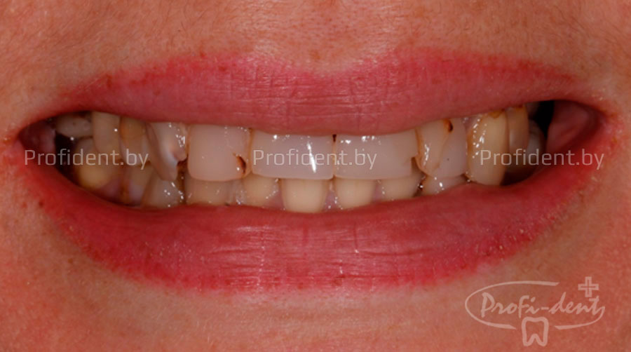 Пациентка обратилась в «Профи-Дент» с желанием восстановить эстетику улыбки и исправить прикус. На что жаловалась пациентка: