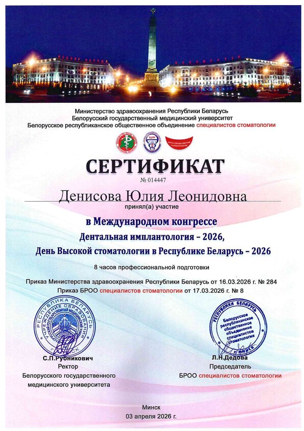 Участвовала в разработке клинических протоколов по ортодонтии Министерства здравоохранения РБ.