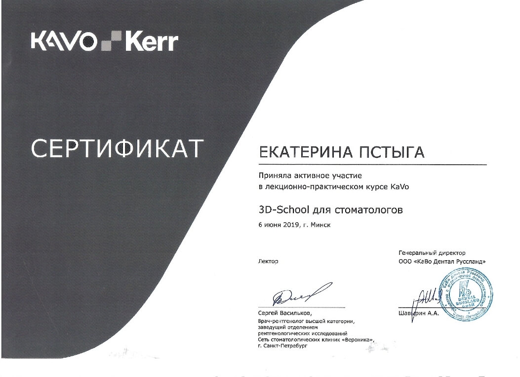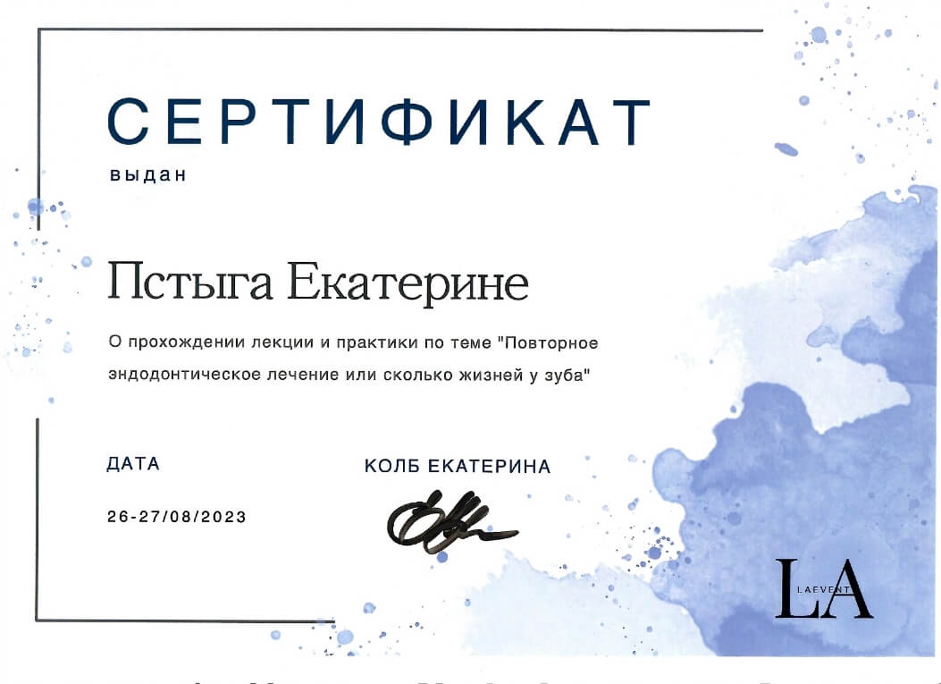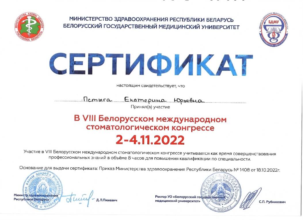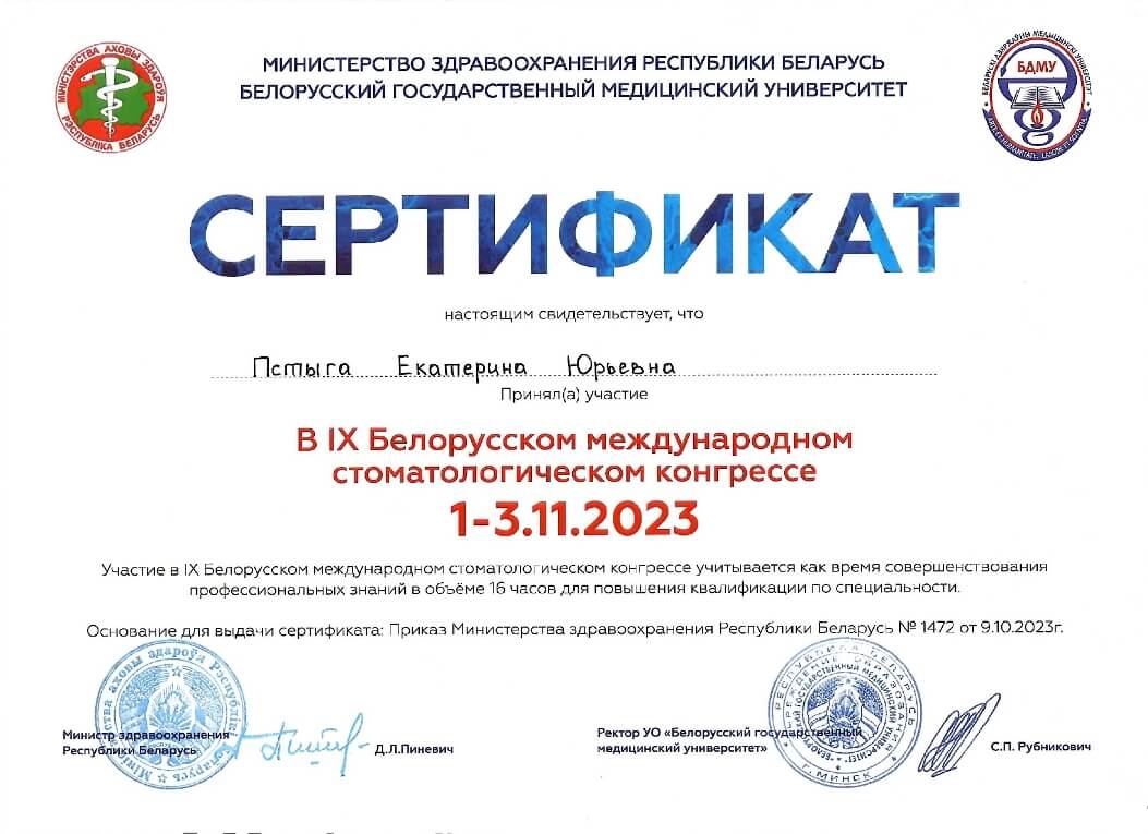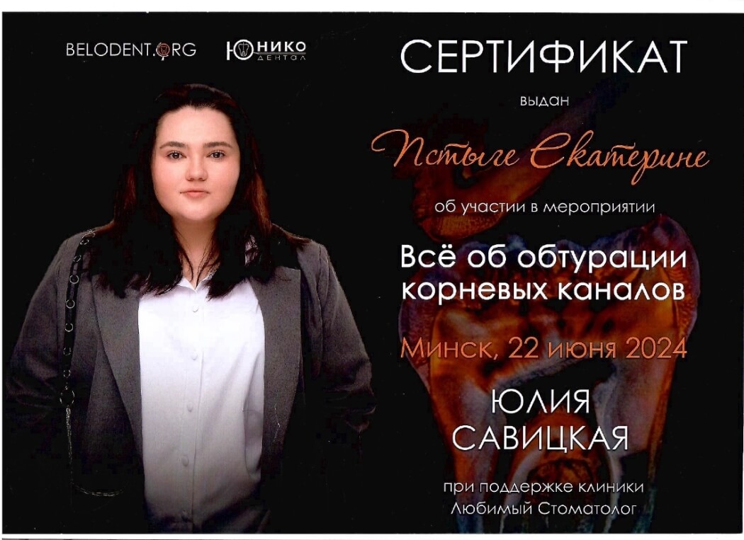 Специализируется на сложном эндодоническом лечении корневых каналов под микроскопом. Владеет новейшими технологиями в данной области, постоянно совершенствуя свои навыки и знания, принимая участие в научно-практических конференциях, симпозиумах и мастер-классах как в Республике Беларусь, так и за рубежом.