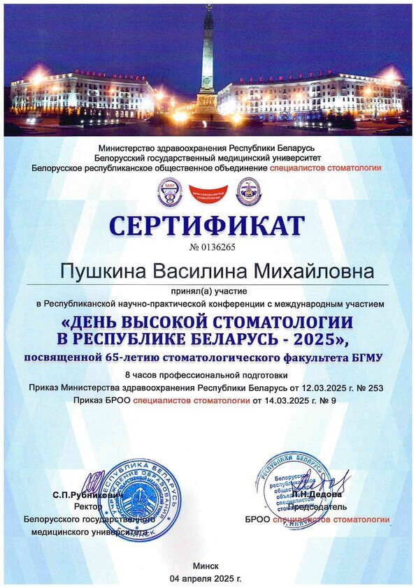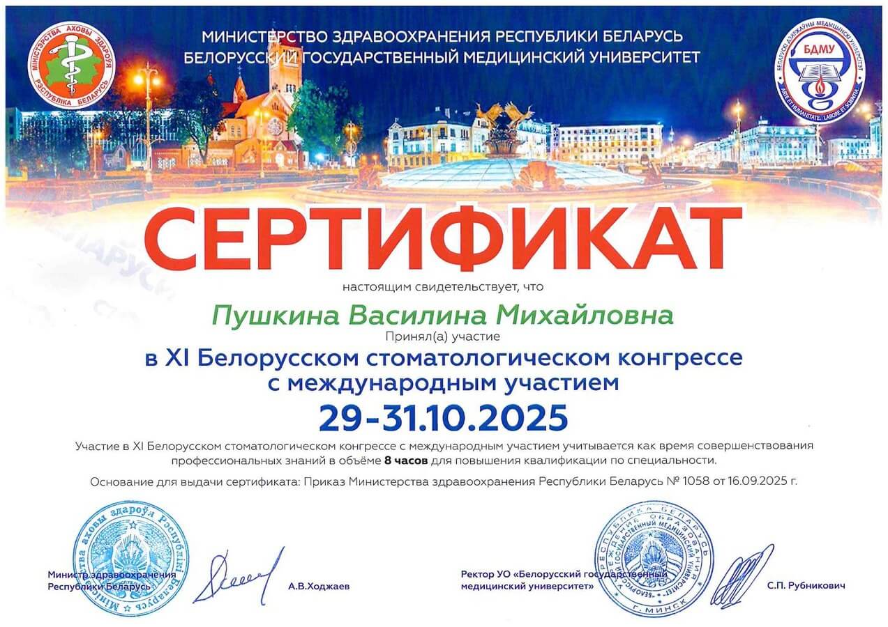 Василина Михайловна в 2014 году окончила стоматологический факультет Белорусского государственного медицинского университета.