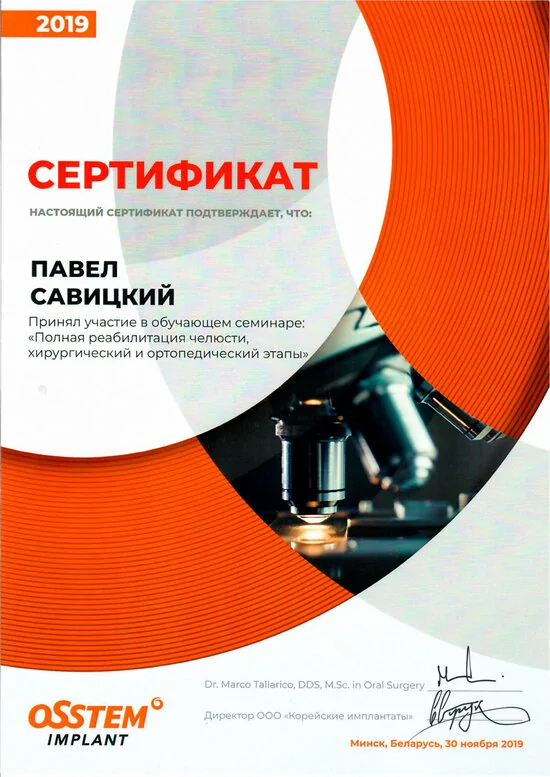 - 2019 г. , «Полная реабилитация челюсти, хирургический и ортопедический этапы»